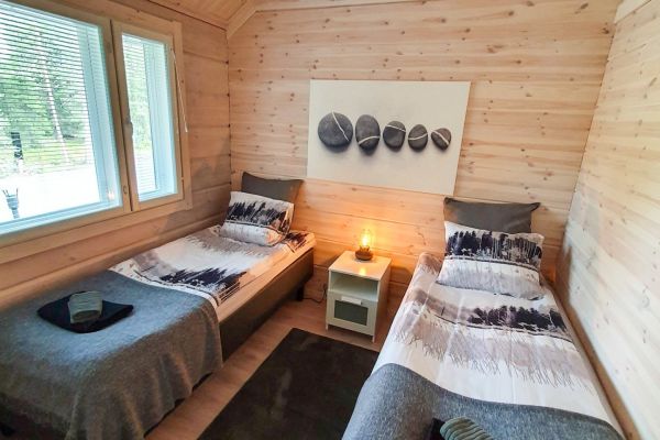 Iisakin Portti has two apartments located in semidetached log house. Each apartment has 2 bedrooms. There is also spacious kitchen and living room with fireplace. Chalet also have bathroom with sauna, 2 showers and toilet & one separate toilet. In summer time it is nice to relax on the glazed terrace and make barbecue outside.