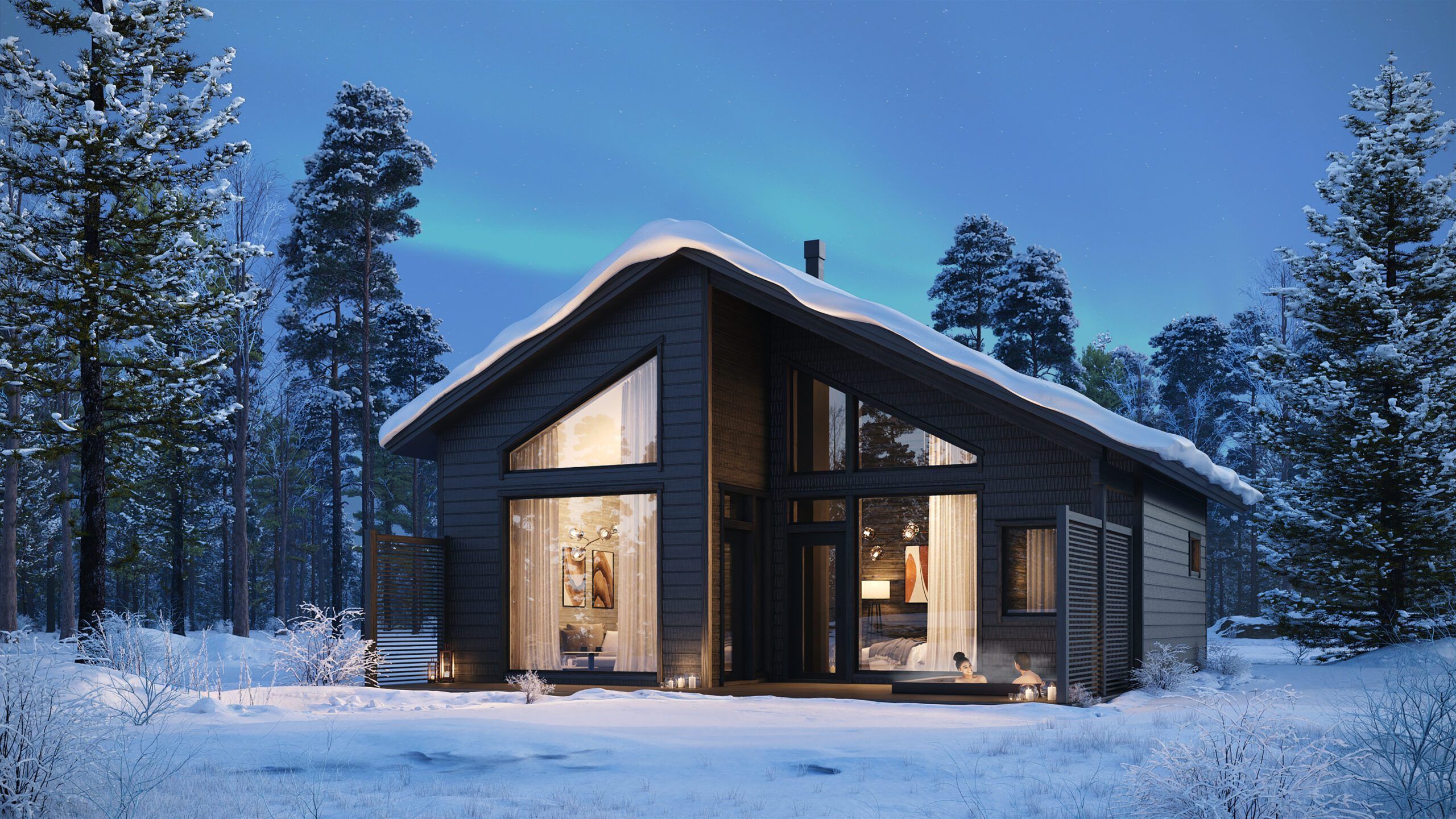 Experience the ultimate blend of comfort and elegance in our exclusive one-bedroom lodges, ideal for 2+2 guests. Each lodge features a stylish living room and bedroom with a cozy fireplace, a fully equipped kitchenette, a private sauna, and a modern bathroom. Step out onto your private terrace to unwind in your very own outdoor hot tub — all surrounded by the serene beauty of nature. Perfect for a romantic getaway or a peaceful retreat with premium comforts.