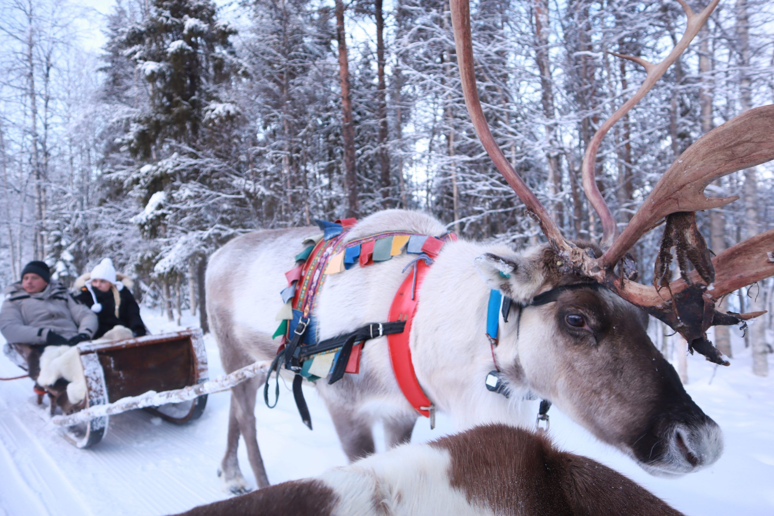 Reindeer sleigh ride under the beautiful evening sky Please enable javascript in your browser to book