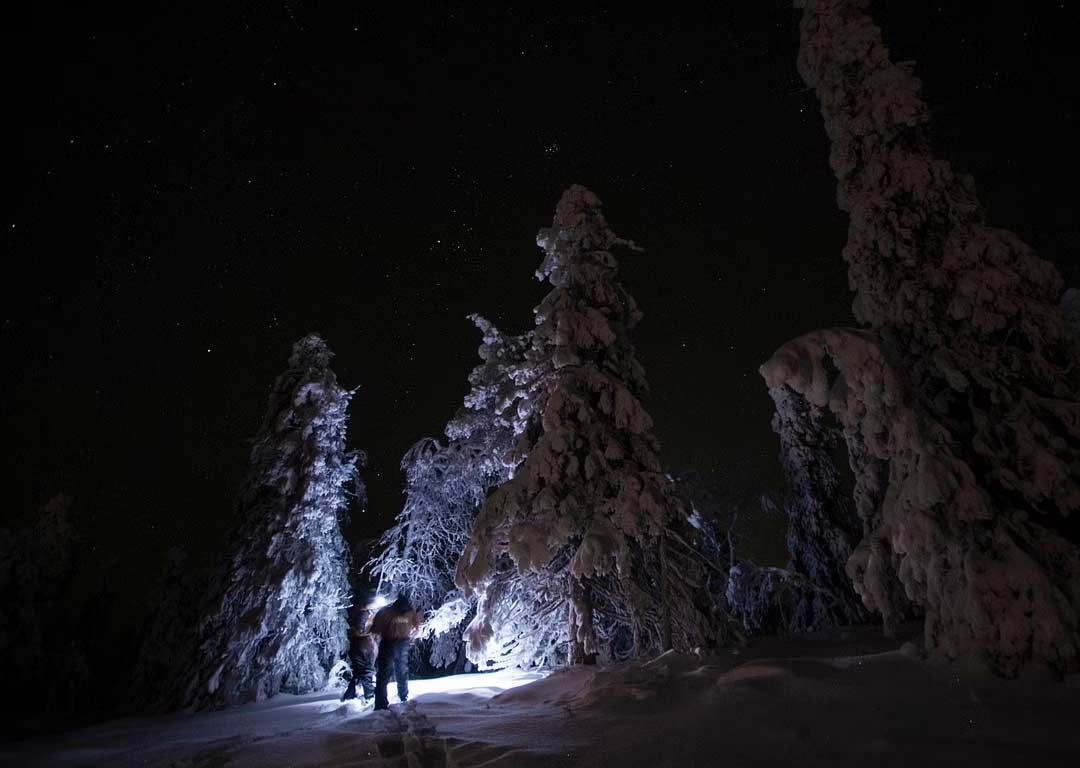 Search for the Northern Lights, snowshoe walking through the fell scenery Please enable javascript in your browser to book