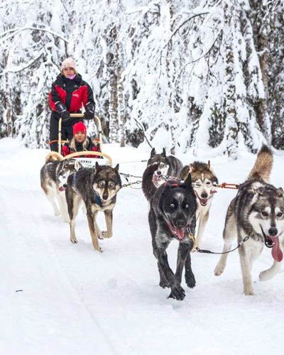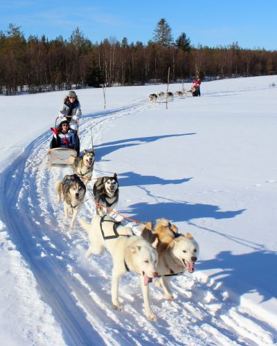 Tervetuloa mukaan ikimuistoisiin talvisiin aktiviteetteihimme. Tarjolla on opastettuja ohjelmia maan ja taivaan väliltä, mm kelkkailua, revontulien etsintää, huskyajelua, porotilavierailuja, lumikenkäilyä ja koskikelluntaa.